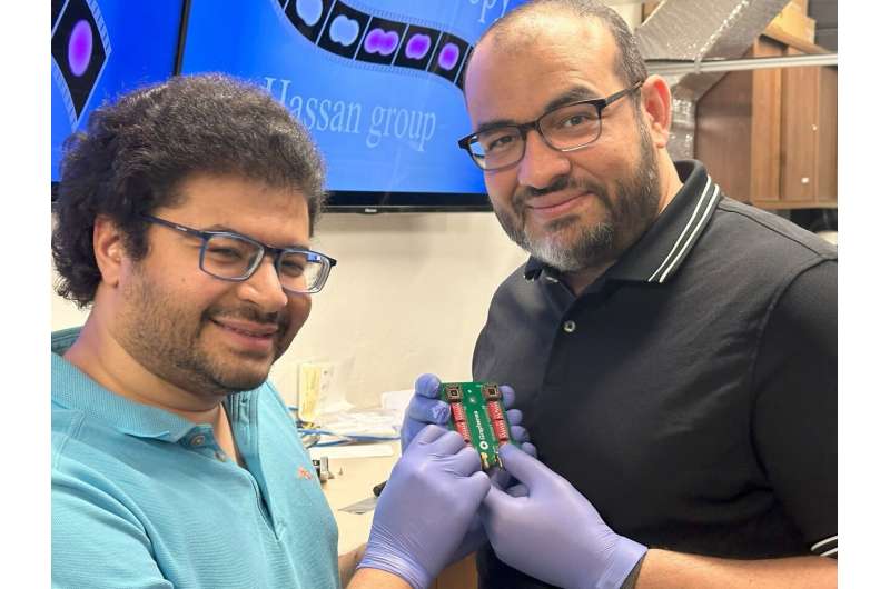 研究人员手持用来开发拍赫兹晶体管的商用晶体管。图片来源:美国亚利桑那大学