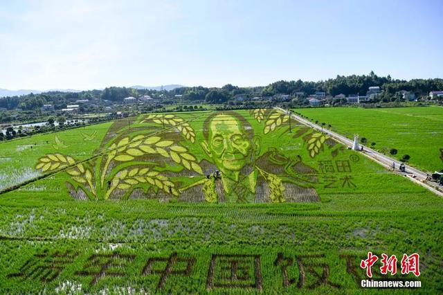 稻田中的袁隆平巨幅画像。杨华峰摄