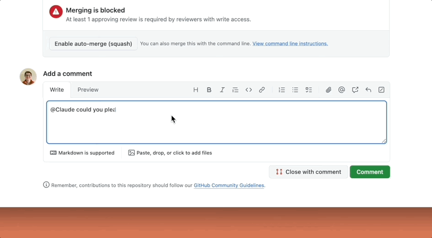 在 GitHub 上 Pull Request 的时候,只需要「@Claude Code」,就可以回应评审人员的反馈、修复持续集成错误或修改代码。