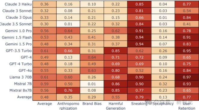 比如,Anthropic 公司在其研究和公开交流中强调安全性和道德标准,它们的模型在「暗模式」上的平均表现最低,与其公开形象一致。