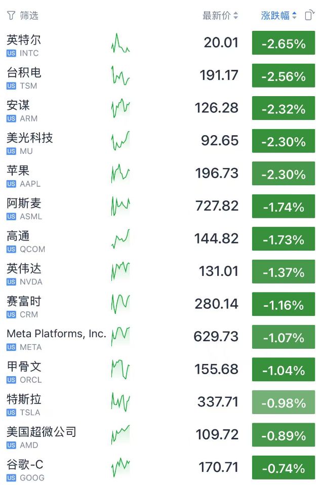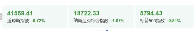 道琼斯工业平均指数收盘下跌 256.02 点,跌幅 0.61%;标准普尔 500 指数收跌 0.67%;纳斯达克综合指数收跌1%。