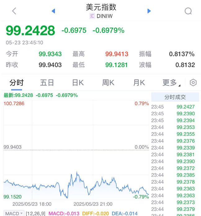 全球股市普遍下跌,苹果公司领跌科技板块,股价下跌2%。美元接近 2023 年以来的最低点。