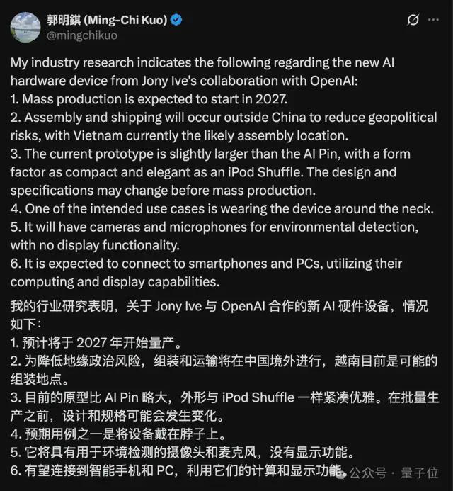 但现在我们所了解到的也只是 OpenAI 新硬件产品的冰山一角,或许在明年正式与公众见面前,它将逐步演化成奥特曼口中的「技术奇迹」,且让我们一起拭目以待!