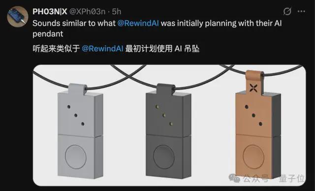 - 新设备比 Humane 的 AI Pin 略大,外形却与 iPod Shuffle 一样紧凑优雅