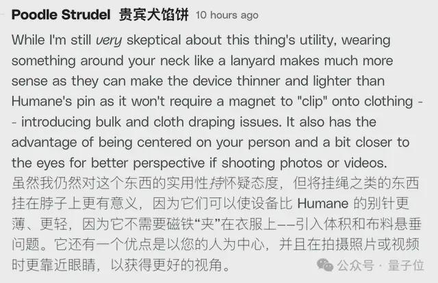 再比如被 Jony Ive 大肆批评一通的Humane AI Pin,支持访问 ChatGPT,虽然是别针形态,但内置有智能语音助手和拍照录像功能,似乎和新硬件泄漏的功能描述也相差不远。