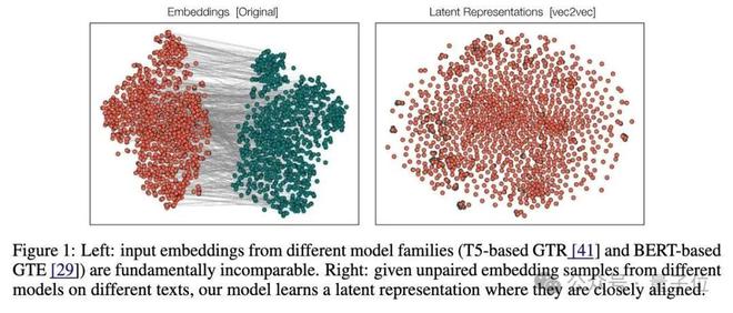但不同模型之间由于训练数据、架构不同,生成的嵌入向量空间完全不兼容,无法直接进行对齐。