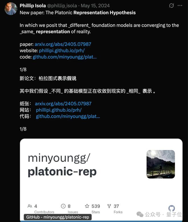 曾因 llya 离职 OpenAI,在互联网上掀起讨论飓风的柏拉图表示假说提出: