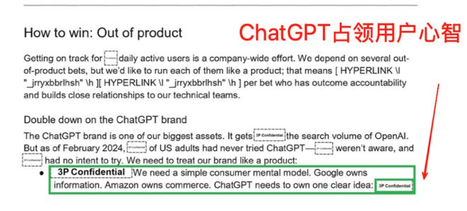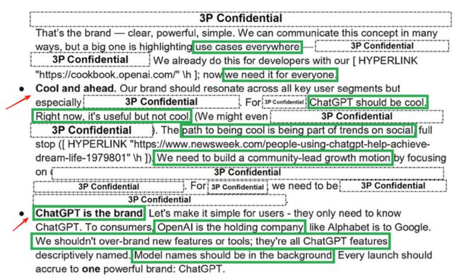 同时,在这份文件中还透露出 OpenAI 想要淡化「OpenAI」本身品牌,转而突出「ChatGPT」的核心定位,让其在用户心中形成核心认知: