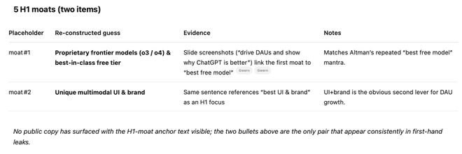 但是我们都知道了,OpenAI 在 2025 年上半年计划投资构建两个核心护城河,并将进一步在下半年建立更多护城河来巩固优势。
