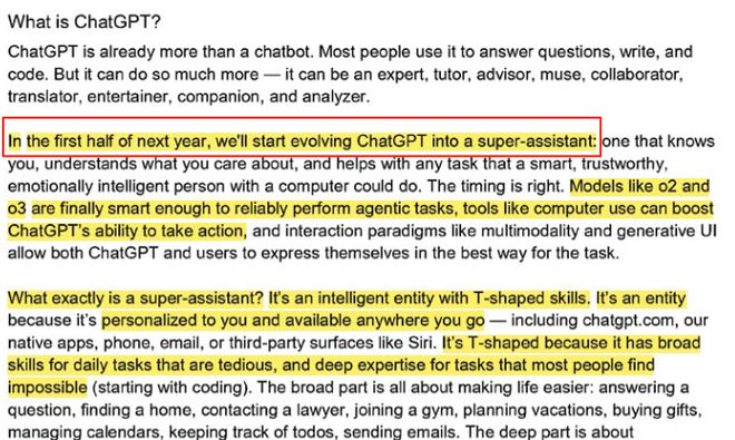 在这份标题为「ChatGPT:H1 2025 Strategy」的法律文件中(合理推测是 2024 年),OpenAI 对 ChatGPT 的愿景进行了详细的解释。
