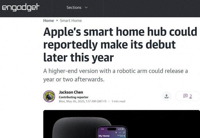 5 月 27 日消息,据 engadget 援引彭博社报道称,苹果的智能家居中心设备预计最早于今年年底发布。该设备的基础版本将率先面世,而配备机械臂的高端版本有望在随后的一两年内推出。