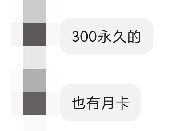 售卖者表示,自己出售的这款软件有月卡和永久几种购买方式,其中,永久使用权出售价格为 300 元。对于是否存在封号危险,售卖者进行了否定,并表示软件有免费的持续更新功能。