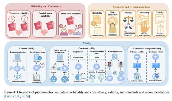 最后,文章归纳了近期研究提出的标准和建议,为 LLM 心理测量学建立科学方法论基础。