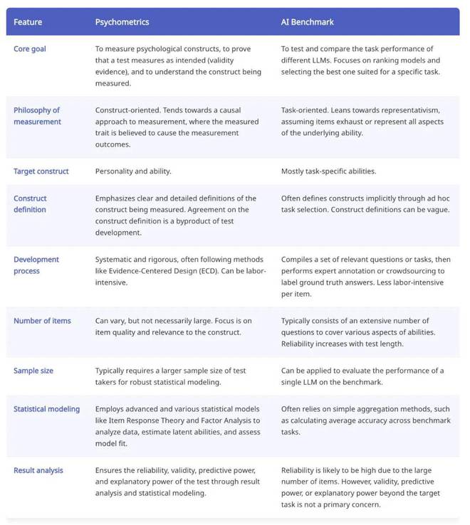在大语言模型的评估领域,传统 AI 基准测试和心理测量学看似都依赖测试项目和分数来衡量能力,但两者的内核却截然不同。