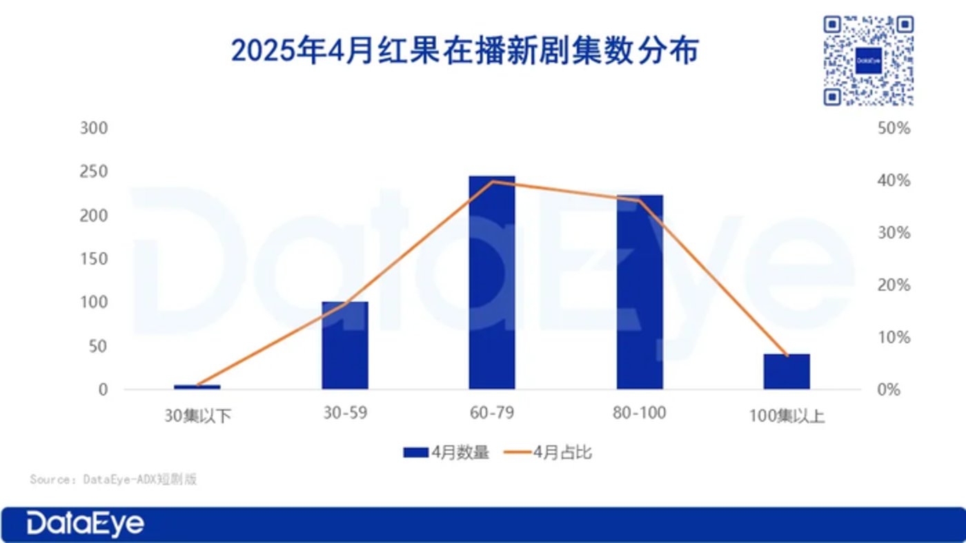 与 3 月相比,剧集 “拉长” 趋势显著:60 集以下短剧占比从 23% 降至 17%,下降 6 个百分点。这一变化与平台内容策略高度契合 —— 近期发布的剧本激励政策明确要求完稿不低于 80 集,释放出推动短剧向精品化、深度化发展的强烈信号。
