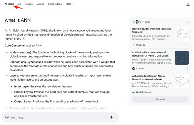 而 AI Mode 则更进一步,用生成式回答取代传统链接列表,甚至鼓励用户继续提问而非访问外部网页。