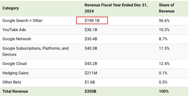 2024 年谷歌搜索业务营收近 2000 亿美元。