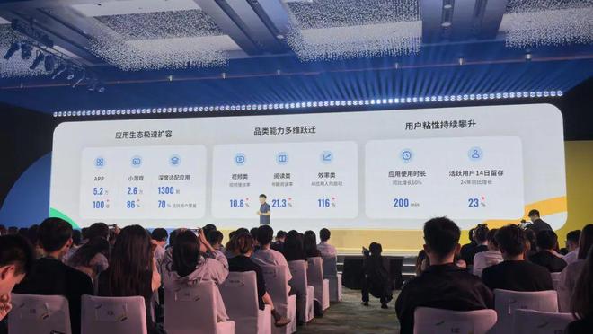 小游戏的规模也得到了大幅增长,达到 2.6 万。此外,深度适配应用有 1300 款,覆盖了 70% 活跃用户。