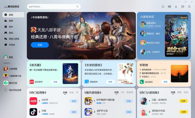 应用宝电脑版上有各种类型的小游戏,直接打开就能玩,电脑秒变游戏机。