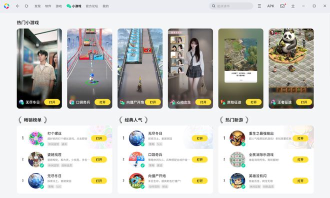 除了在 PC 端玩手游,现在也能在 PC 上玩小游戏啦。