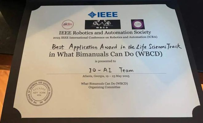 5 月 29 日消息,刚刚结束的 2025 ICRA 双臂机器人能力边界挑战赛上(机器人领域最具影响力的国际赛事之一),国内具身智能公司艾欧智能从全球 88 个参赛队伍中脱颖而出,获得最佳应用奖。