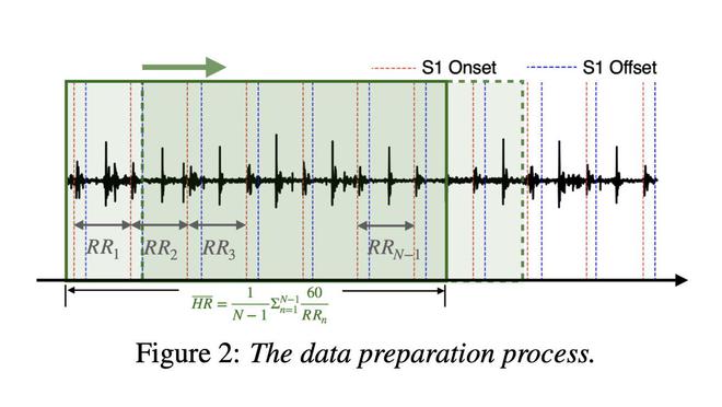 研究使用的是公开的 CirCor DigiScope Phonocardiogram 数据集,总计约 20 小时的心音录音,单段录音时长在 5.1 至 64.5 秒之间。研究团队将音频文件分割为每秒移动一次的 5 秒片段,共生成 23381 个心音片段,用于心率转换测量。