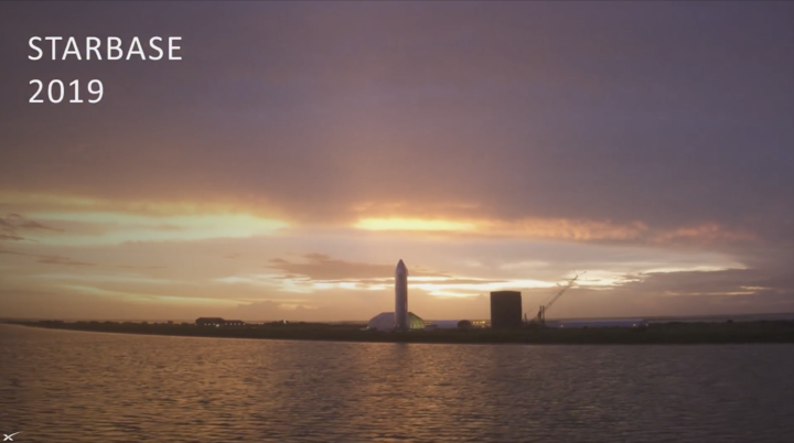 好,让我们开始今天的演讲,前往火星的大门已经开启。我们现在来到了新成立的「星舰基地」(Star Base)德克萨斯。