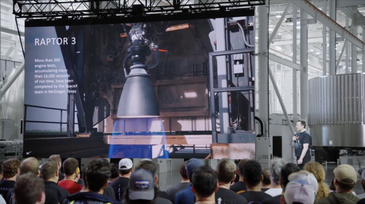 这是新一代的「猛禽 3 号」发动机,性能非常出色。我们要为猛禽团队点赞,这真的让人非常振奋。