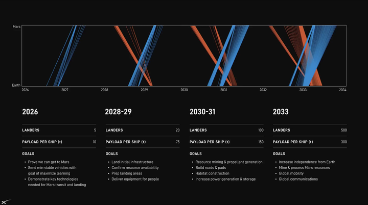 - 即使地球供应中断,SpaceX 计划使火星具备自我发展的能力,实现「文明韧性」,并可能在地球出现问题时反过来救援地球。
