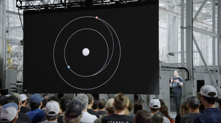 如果我们真的能在明年年底发射星舰,并成功抵达火星,那将是一幅非常震撼的画面。按照轨道周期计算,那艘飞船将在 2027 年抵达火星。