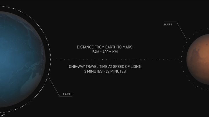 即便是光速传输,地球到火星的延迟也很明显——最理想的情况是约 3.5 分钟,最糟糕的情况,当火星处在太阳的另一侧时,延迟会高达 22 分钟或更久。