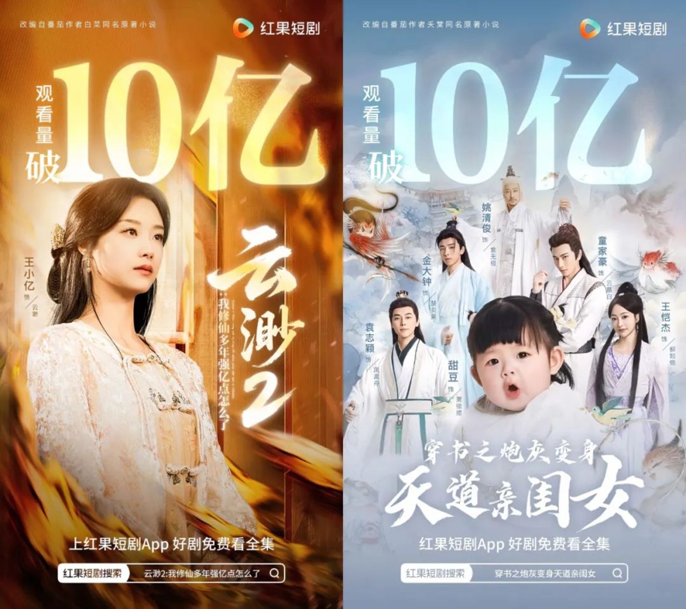 当下行业涌现出更多女强题材微短剧,如《我修仙多年强亿点怎么了》《穿书之炮灰变身天道亲闺女》《郡主十岁,我把纨绔爹养成皇帝啦》等剧。其中《修仙多年》第二季与《天道亲闺女》两部微短剧在红果站内播放量均破 10 亿。