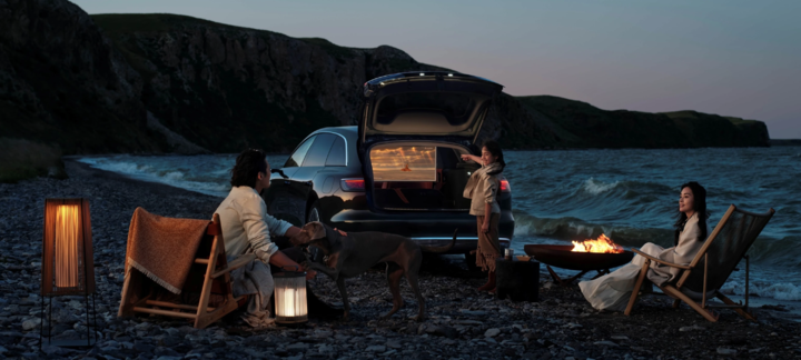 此外,车辆座椅放平后可以与后备厢组成纯平空间,露营时可以当做「大床使用」,车辆还提供行李架及行李箱选装,行李架动态负载 50kg、行李箱最大承重 35kg。