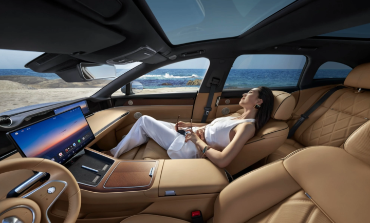 新车标配副驾零重力座椅,支持一键躺平,后排座椅靠背同样支持电动调节,提供了更舒适的乘坐体验,内饰全系标配 Nappa 真皮座椅,全新智慧电动门和专属迎宾灯效也搭载在了新车上。