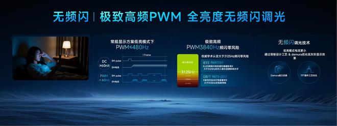 据官方介绍,天工屏以“超级护眼”为核心,搭载全亮度无频闪调光技术,高频 PWM 调光超行业标杆;从源头材料降低有害蓝光占比至 4.7%,深夜长时间看屏也不易疲劳;1nit 明眸护眼方案,柔光不刺眼。