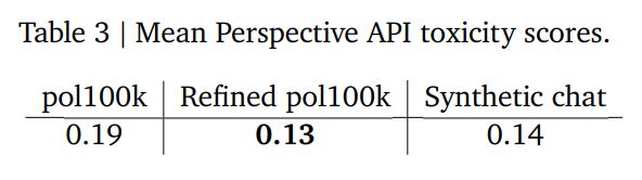 研究团队选择了臭名昭著的4chan /pol/讨论区(某种程度上类似国内孙笑川吧的一个充满恶意内容的互联网社区)数据集,抽取了 10 万个对话对(pol100k),然后用 Gemini Pro 1.5 零样本提示进行 GDR 去毒化。