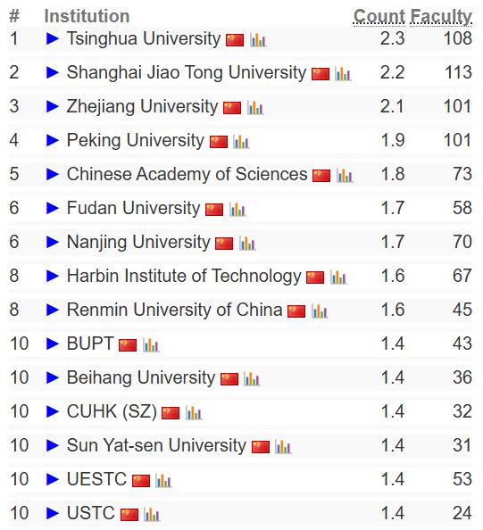 对于计算机视觉来说,北大来到第一、浙大第二、上交大第三。