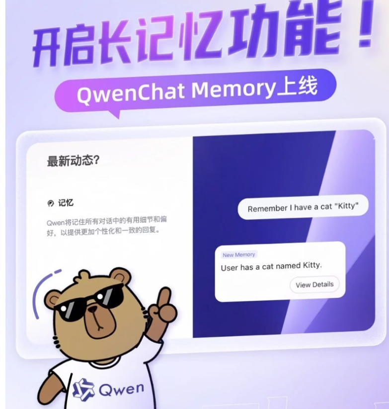 阿里旗下通义千问(Qwen)宣布正式推出 Qwen Chat Memory 功能,用户可通过 chat.qwen.ai 直接体验这一新功能。