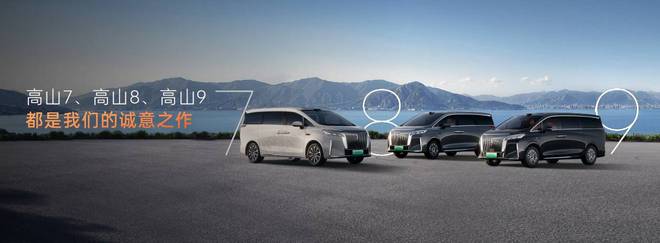 高山系列采用的是一车三款的模式,高山 9 是宜商宜家的旗舰定位,高山 8 面向大家庭,高山 7 则主要面向年轻家庭。