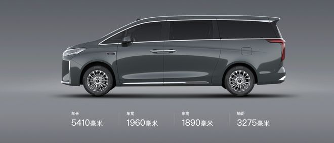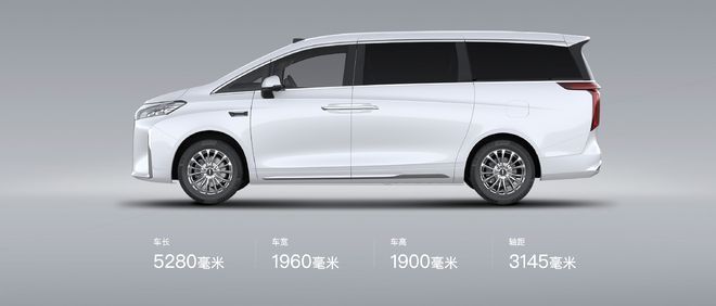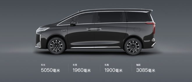 高山 7 的车身尺寸为 5050 x 1960 x 1900 mm,轴距为 3085 mm,采用 7 座布局,作为对比高山 8 的车长为 5280mm,轴距为 3145mm,高山 9 更长一些,车长为 5410mm,轴距为 3275mm。