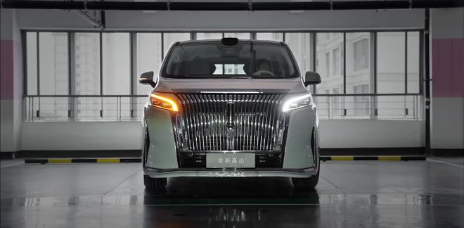 外观上高山 7 延续了 8、9 两款车型大气稳重的风格,采用了「高山流水」的设计语言,前脸为大尺寸「飞瀑式」镀铬中网配合竖向条纹的设计,车身侧面和尾部都是比较标准的 MPV 造型,车身比例协调,没有使用过多夸张的线条,更偏向于传统家庭用户的审美。