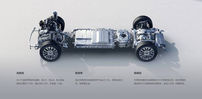 这套动力系统的最大功率为 337kW,最大扭矩 644N·m,百公里加速约 5.7 秒。搭载一块 44.28kWh 的电池后,高山 7 在 WLTC 下纯电续航里程为 172km,满油满电综合续航为 945km。