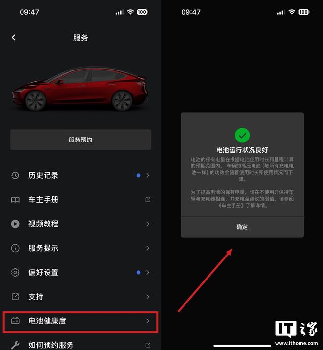 10 月 17 日消息,特斯拉现已悄悄更新旗下 Tesla App,目前用户可以在“服务”中直接查看汽车的电池健康度,不过具体的健康度百分比仍然需要联系在线客服获取(App 右上角“消息”图标,然后选择“在线客服”,在对话框中输入“查询电池健康度”,系统会自动发送一份电池健康度报告)。