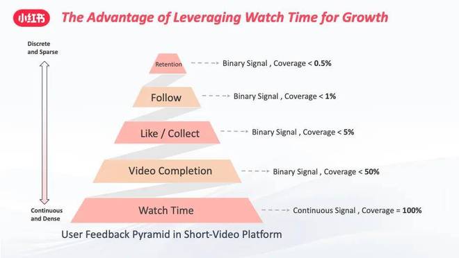 观看时长是衡量平台内容质量与用户满意度的关键,尤其在小红书视频场景中,观看时长信号的覆盖率高达 100%。