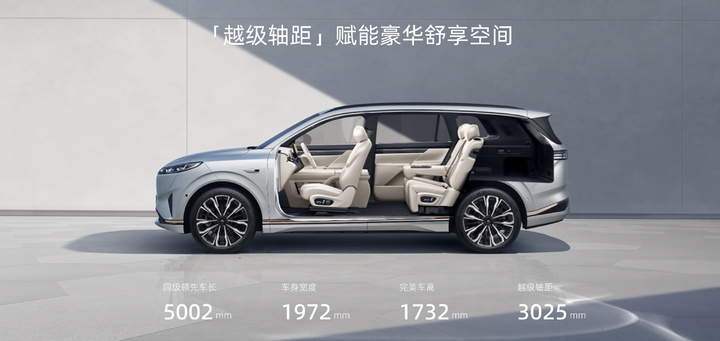 新车的长宽高尺寸分别为 5002×1972×1732mm,轴距达 3025mm,采用 5 门 5 座布局,车内共设有 22 处储物空间,后备厢最高可扩展至 1876 升。