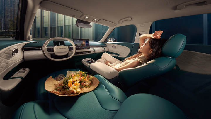 2026 款纳米 01 车内全系标配冷暖空调,主驾配备 6 向电动调节座椅,集成记忆迎宾、3 挡通风与 3 挡加热功能,新搭载的云柔环抱座椅也在舒适性上有所提升。