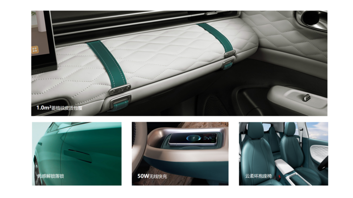 内饰方面,新车的内饰主打「精致」风格,内饰包裹大面积使用了菱格纹设计, 并采用悬浮式 12.8 英寸中控屏与怀档式机构,车内还配备有副驾驶抽屉岛台,来增加储物空间。