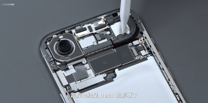 通过微机分的拆机视频我们可以看到,iPhone Air 顶部的「高原」内部足足三分之一的空间被让渡给了扬声器: