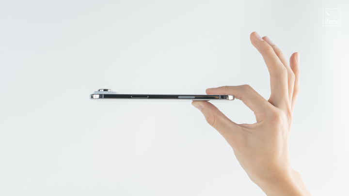 它的装甲铝边框几乎是直上直下的,没有任何圆弧过渡,握在手里不仅触觉上更厚重,也让人很难忽视掉边框的存在。