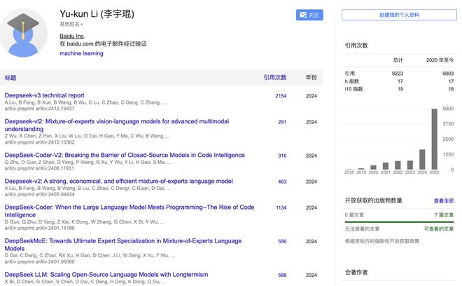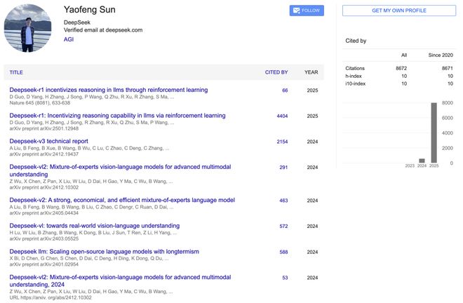 2020 年至今,引用数已过 9 千;参与过 DeepSeek-v3、DeepSeek-vl2、DeepSeek-v2、DeepSeek-Coder、DeepSeek-MoE、DeepSeek LLM 等项目研究。